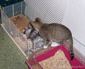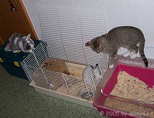 Wir hatten, als ich einzog, 2 Zwerghasen. Der bunte hat es vorgezogen, seinen Wohnsitz zu wechseln.