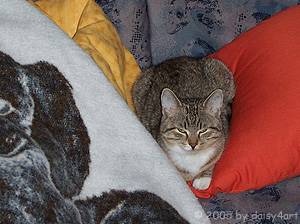 Ich will schlafen! Meine Dosine tuts doch auch. (Dezember 2004)
